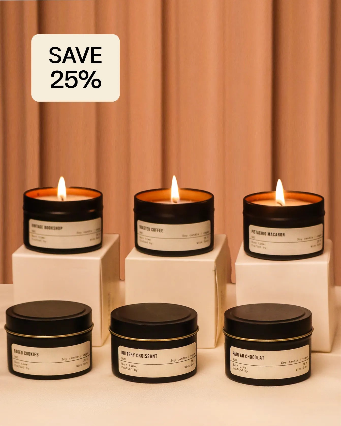 A curation of our 6 bestselling candles — from sweet bakery notes to warm, nostalgic blends. Perfect for gifting, home rituals, or simply treating yourself.